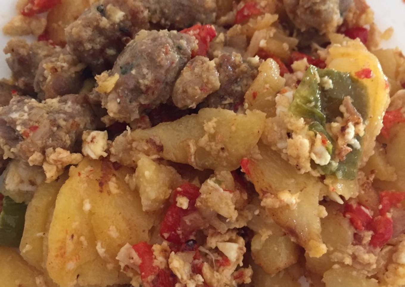 - Una vez frito, añadiremos las patatas y los huevos y movemos hasta que cuajen. Y listo!! Servir con un buen cacho de pan 😂