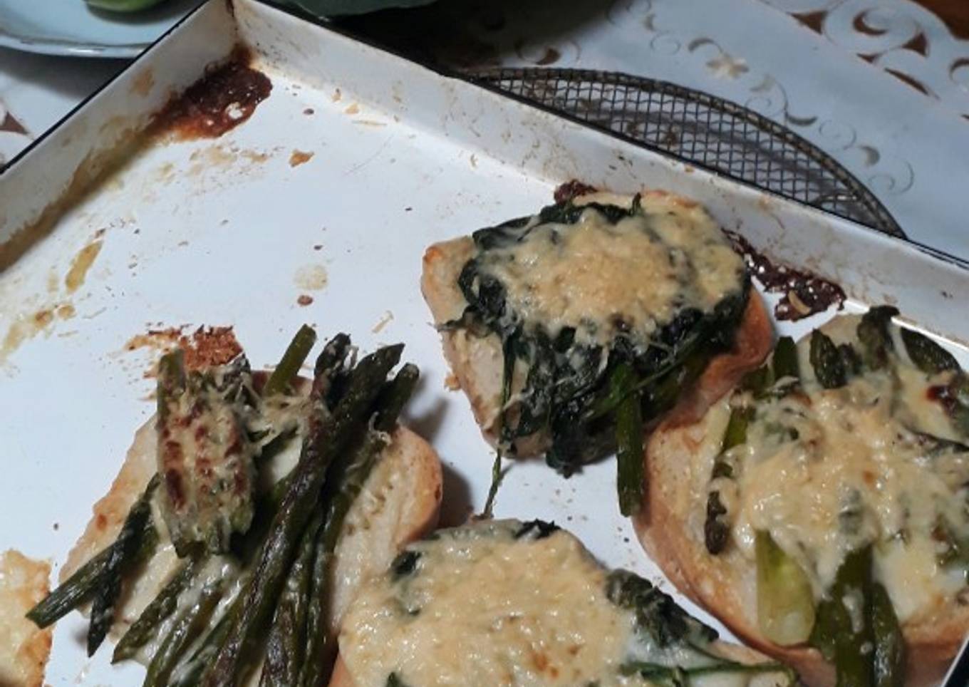 - Sacar panes voltear. colocar capas de salsa blanca y verdura alternar y al fin queso rallado. Hornear hasta gratín.