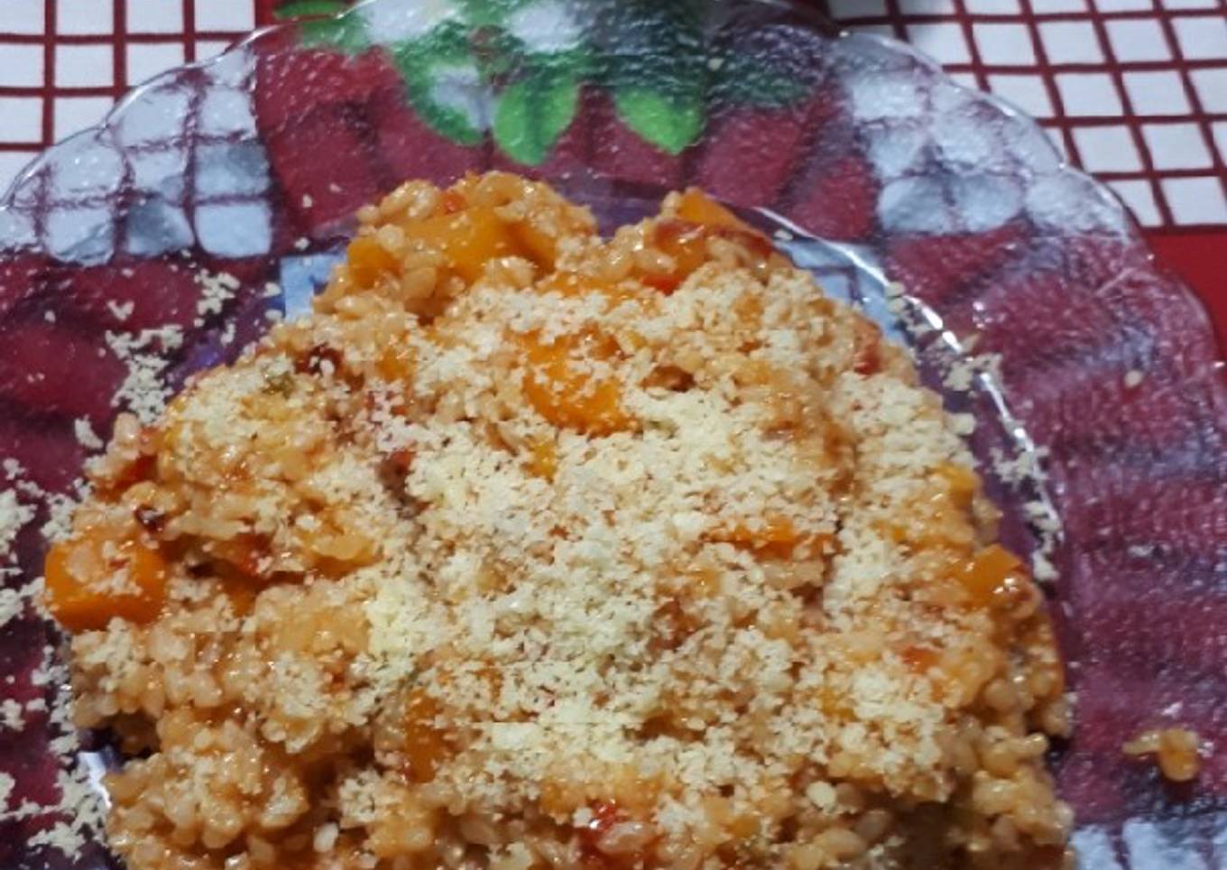 - Una vez cocinado el arroz y la salsa de verduras mezclamos todo. Y queda así ↓↓↓↓ agregamos quesito rallado! 😋