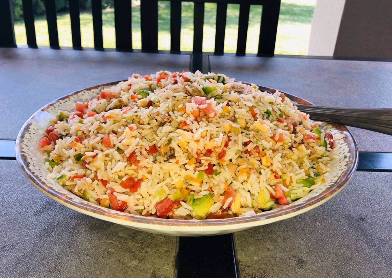 #1receta1árbol #PlatoÚnico Para empezar cada salpicón es un mundo aparte. Todo depende de lo que le agregues o no. Este en particular lo planifiqué con tiempo y preparé el arroz especialmente. Pero puedes hacer menos cantidad con un arroz sobrante guardando las proporciones. Con el calor que está haciendo decidí hacerlo una comida fría para la hora de almuerzo. Resultó ser muy sabroso, contundente y saciador. Y lo mejor.... colorido y nutritivo.